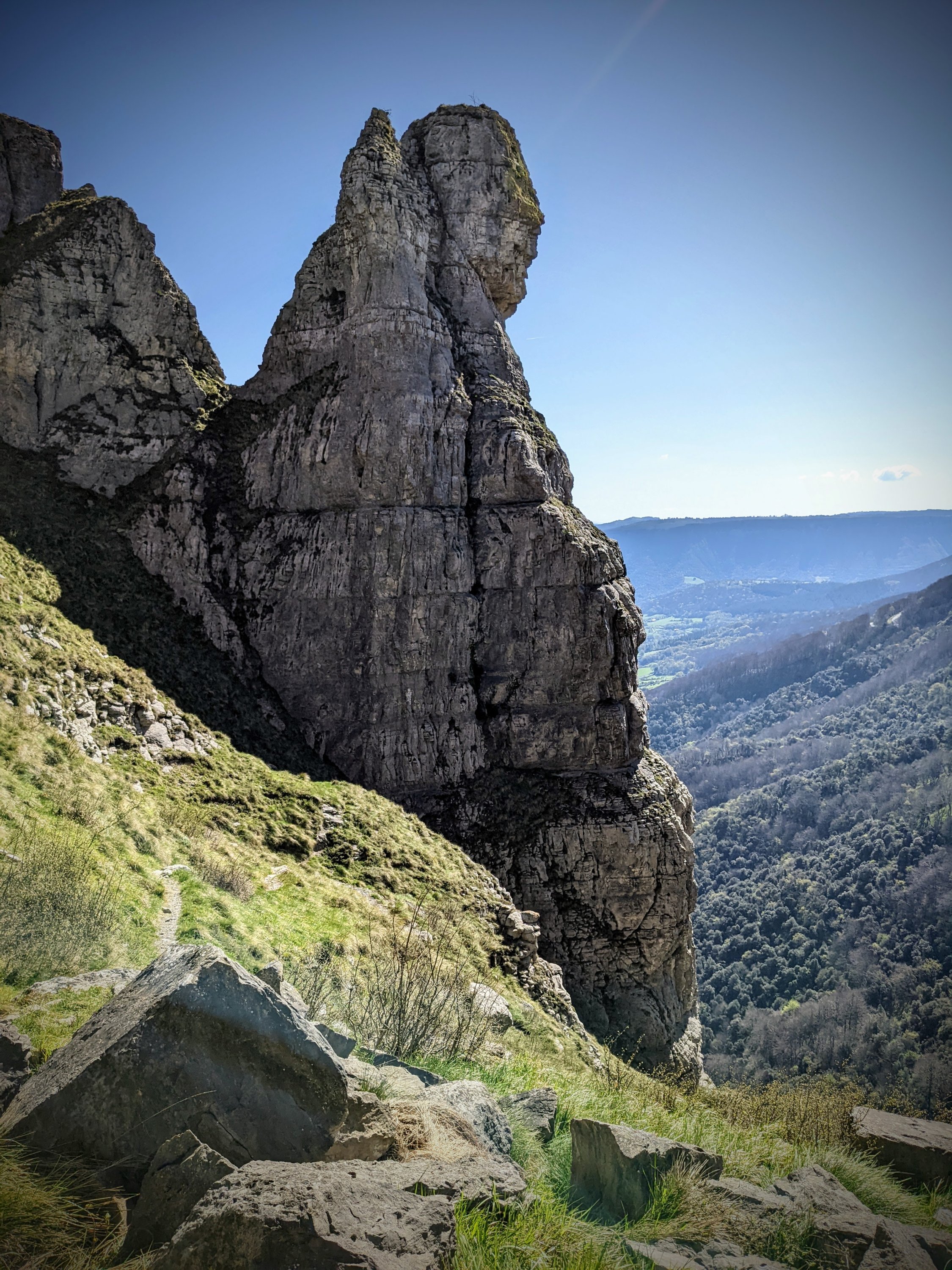 Está ubicado en la sierra Salvada, límite entre Burgos y Alaba. Requiere de escalada, no muy complicada por el norte y bastante compleja por el sur. Yo lo rodeé para ir hacia otro pico ya que no soy escalador, como mucho trepador.