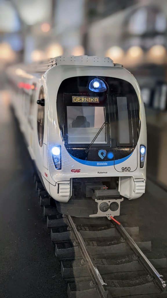 Hoy en el museo del Ferrocarril de Bilbao he intentado que esta maqueta de tren pareciera un convoy real en la estación.