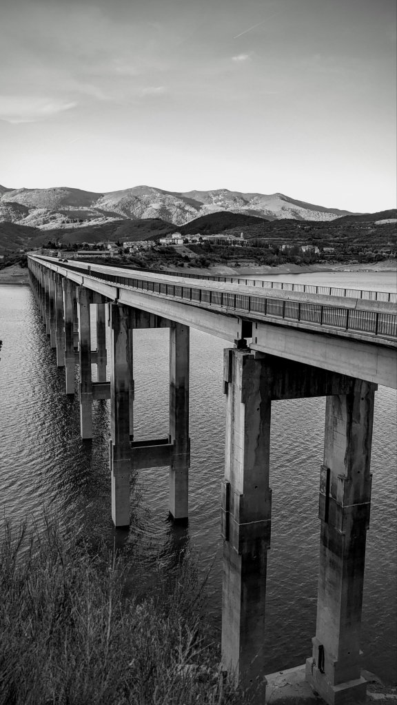 Puede parecer que el puente emerge del agua como una gran estructura poderosa. Pero lo cierto es que desaparece el agua. No llueve y se evapora por el calor, lo cierto es que cada vez hay menos. Y si hay una cosa poderosa y vital para nosotros es el agua.