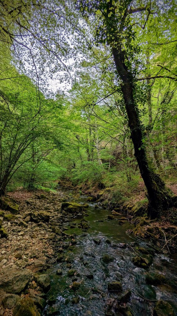 Pero abajo del todo, en lo que yo llamo el fondo de la «V», allí oculto está algo que desde arriba no se ve. Es el fondo del valle, donde el río y la humedad hacen posible toda esa vegetación y crean lugares maravillosos.