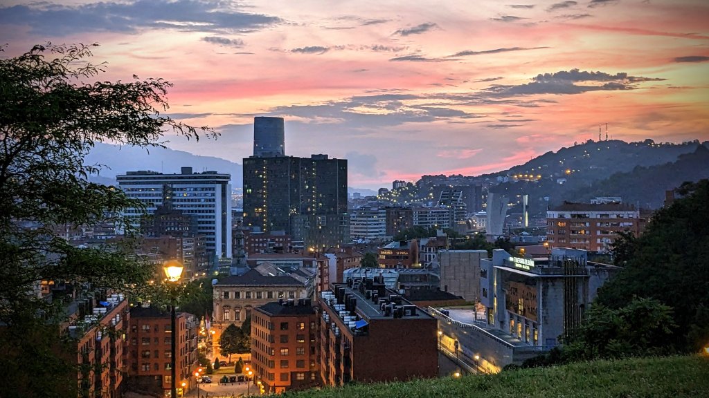 Así se ve el atardecer desde mi antiguo barrio. En Bilbao la gente suele estar muy orgullosa de su barrio. Hacen sus fiestas, conciertos, concursos y tienen sus propios clubes de fútbol u otros deportes.