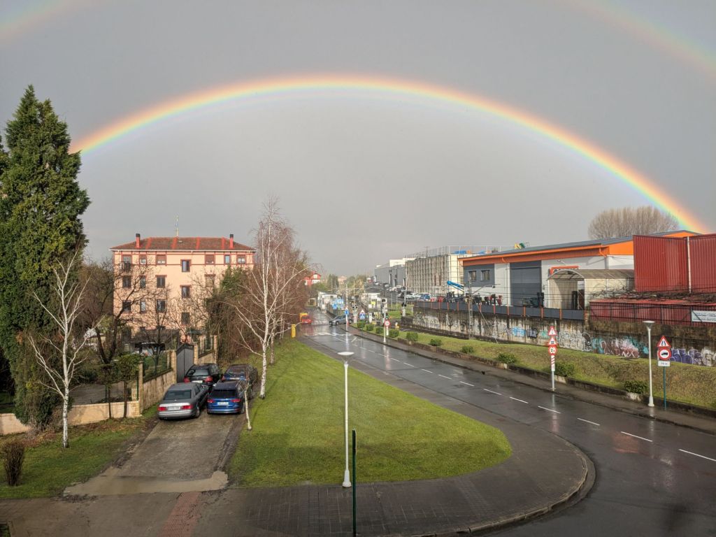 Aunque parezca mentira esta vista se suele repetir desde la ventana de mi oficina. Ya es el tercer arcoiris que veo este invierno desde mi silla.