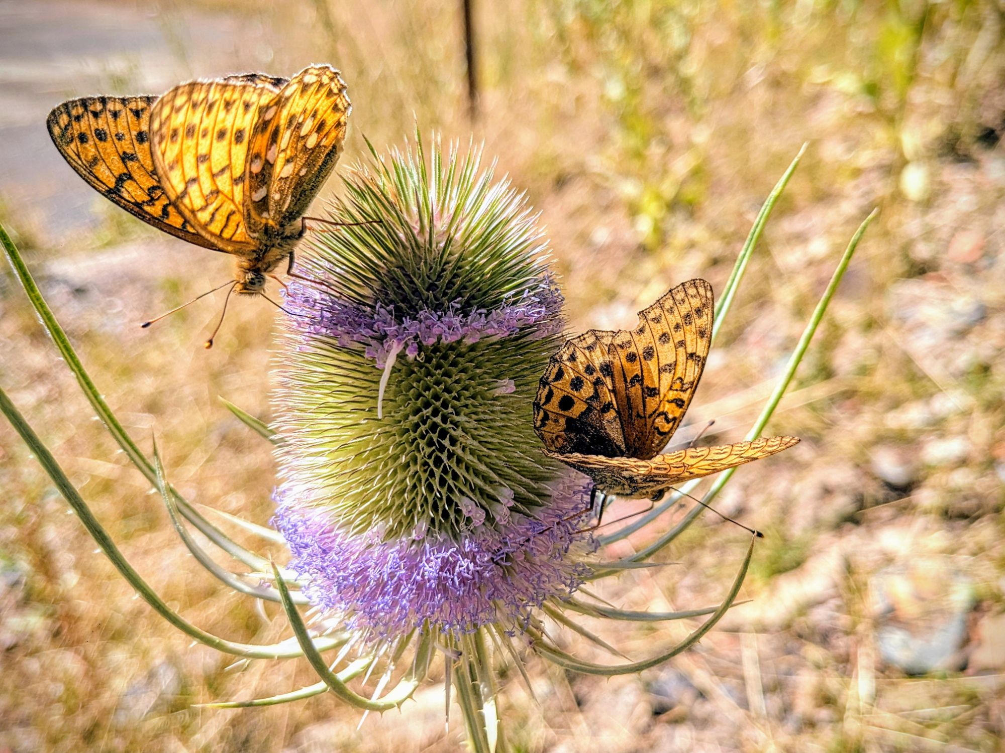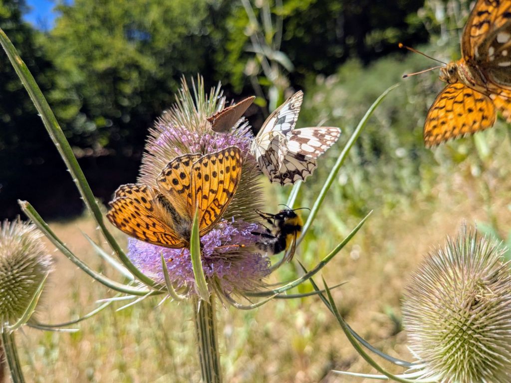 La semana pasada dando un paseo con mis hijos por un bosque, nos encontramos un festival de insectos alrededor de los cardos que todavía conservaban polen.